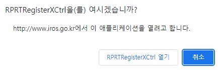 일단 제가 겪은 이슈는 열람 시, RPRTRRegisterXCtrl 관련 프롬프트 창이 뜬 이후에 열람이 안 되는 상황이었습니다.