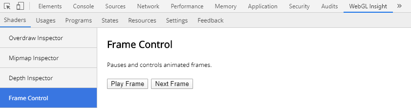 이 해결책도 그 친구가 제시해줬는데 WebGL insight라는 툴로 frame을 정지시킬수가 있다.