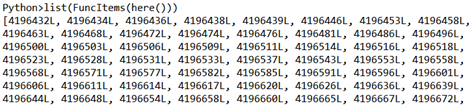Funcltems (주소) : 지정한 함수 주소에서 모든 주소를 리턴해 준다, 리턴 값이 iterator이다.