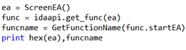 idc.get_screen_ea(), idc.here(), idc.ScreenEA() : 커서가 있는 곳의 주소를 리턴해 준다.