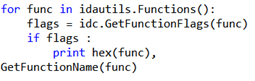 idc.GetFunctionFlags(주소) : 주소의 플래그 값을 리턴
