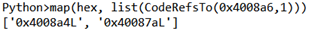idautils.DataRefsTo(주소) : 주소가 쓰인 곳 모두 반환