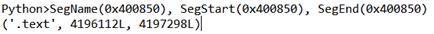 idc.SegEnd(주소)(=idc.get_segm_end(주소)) : 주소에 대한 영역 이름, 시작, 마지막 주소 리턴